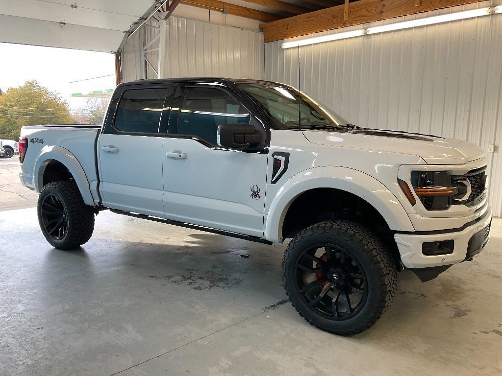 Our boldly designed lifted 2024 Ford F-150 XLT SuperCrew 4X4 Black Widow in Oxford White offers tons of capability! Powered by a 5.0 Liter V8 delivering 400hp to a 10 Speed Automatic transmission with multiple drive modes. This Four Wheel Drive truck also handles tough challenges with a responsive suspension, achieving nearly 24mpg on the highway. Our Ford F-150 faces the world with a fearless attitude, LED lighting, fog lamps, power running boards, body color bumpers, heated power mirrors, a SecuriCode keypad, skid plates, a spray-on bedliner, a sunroof, a Class IV trailer hitch, and bold 22-inch Black Widow wheels.