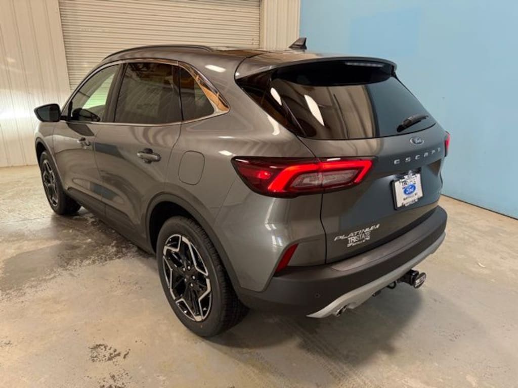 Primed for upscale travel, our 2026 Ford Escape Platinum AWD with the Premium Technology Pack stands proud in Carbonized Gray! Motivated by a TurboCharged 2.0 Liter EcoBoost 4 Cylinder delivering 250hp to an 8 Speed Automatic transmission for confident acceleration. This All Wheel Drive SUV also helps you master the miles with comfort while returning nearly 31mpg on the highway. You'll be riding in style, too, with our Escape's LED lighting, fog lamps, power liftgate, black roof rails, dual exhaust outlets, a panoramic sunroof, and 19-inch ebony black wheels.
