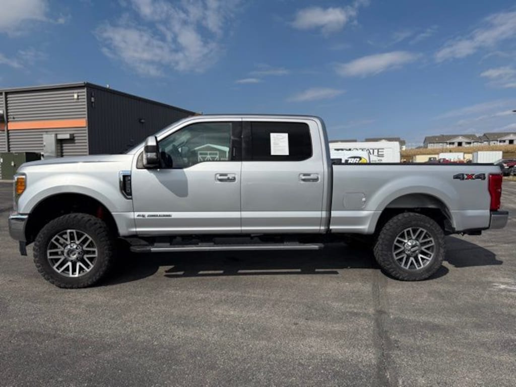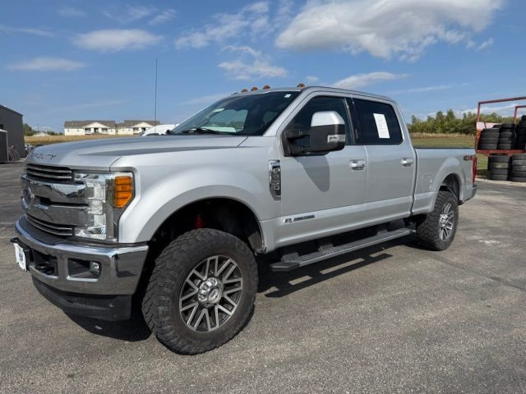 Appreciate the heavy-duty stamina and handsome good looks of our 2017 Ford F-250 Lariat Crew Cab 4X4 that is ready for adventure in Ingot Silver Metallic with the Ultimate Pack! Powered by a TurboCharged 6.7 Liter PowerStroke Diesel V8 that offers 440hp connected to a TorqShift 6 Speed Automatic transmission so you can take on the toughest tasks with massive payload and towing capability. Ford Tough builds this Four Wheel Drive, and there's no mistaking the F-250 Lariat as it powers down the road with a commanding stance, running boards, spray-on Bedliner, a twin panel sunroof, a tonneau cover, and that distinct chrome grille.