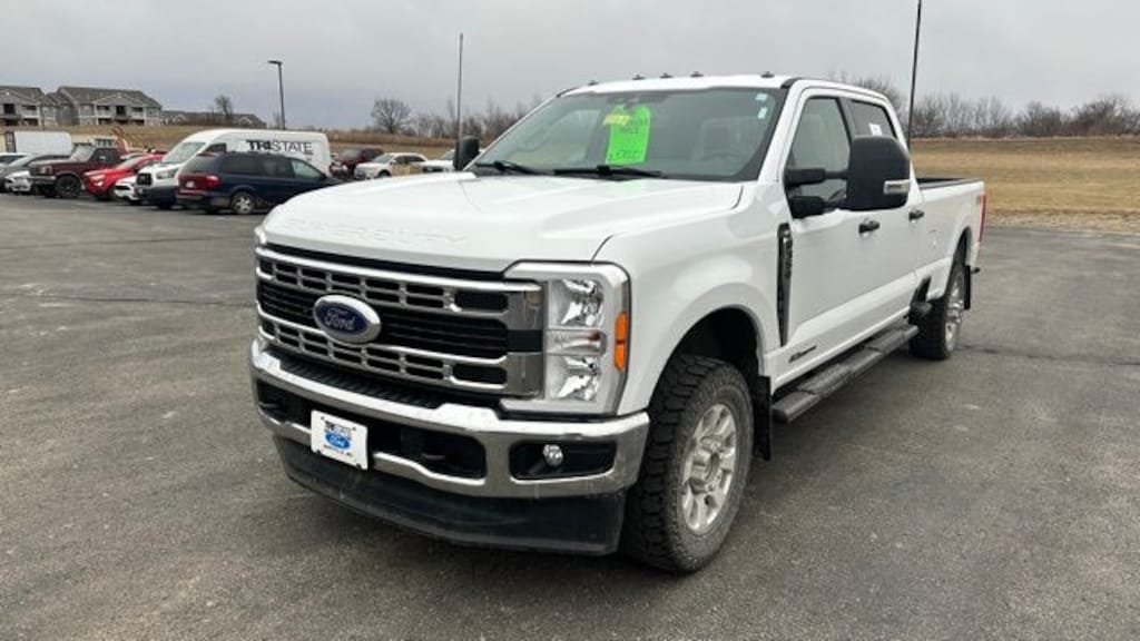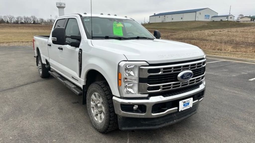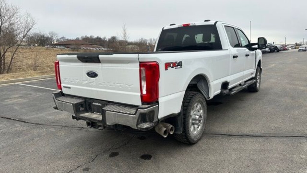 Our One Owner, Accident-Free, Diesel powered 2023 Ford F-350 XLT Crew Cab 4X4 with the FX4 Off-Road Pack and Snow Plow Prep/Camper Pack in Oxford White is the tool of choice for smart owners like you! Motivated by a TurboCharged 6.7 Liter PowerStroke Diesel V8 offering 475hp and 1050lb-ft of torque to a 10 Speed Automatic transmission. This Four Wheel Drive truck can also reach job sites on the road or off, thanks to our FX4 Pack's off-road shocks, Hill Descent Control, skid plates, and an electronic locking differential. A bright chrome grille leads the way for F-350 style with an FX4 Off-Road bed decal, chrome bumpers, fog lamps, spray-on bedliner, heated power trailer mirrors, alloy wheels, tow hooks, a hitch receiver, running boards, and a power-locking tailgate.