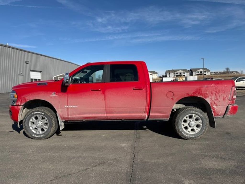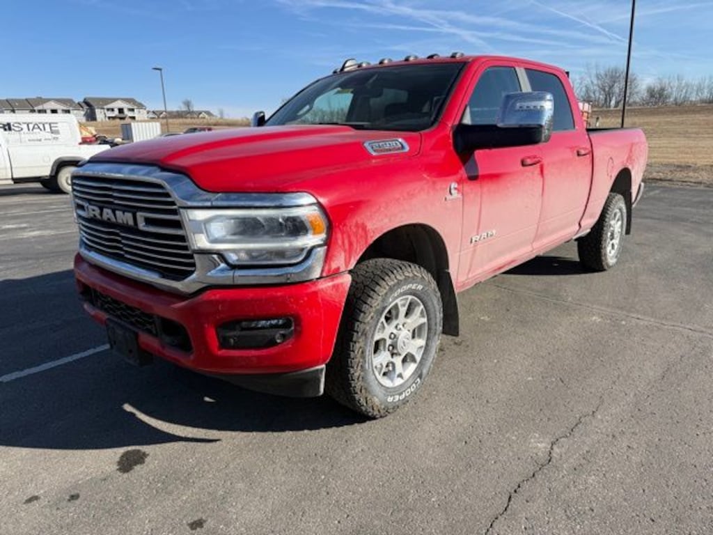 Owners love our One Owner, Accident-Free, Diesel powered 2023 RAM 2500 Laramie Crew Cab 4X4 with the Level 1 Pack for its bold comfort and capability in Flame Red! Motivated by a TurboCharged 6.7 Liter Cummins Diesel 6 Cylinder providing 370hp and 850lb-ft of torque to a 6 Speed Automatic transmission. A heavy-duty suspension also helps this Four Wheel Drive truck maintain its composure even when hard at work. Dynamic and distinctive, our RAM features premium alloy wheels, a chrome grille, painted bumpers, a Class V receiver hitch, and our Level 1 Pack's remote release tailgate, LED lighting, and fog lamps.